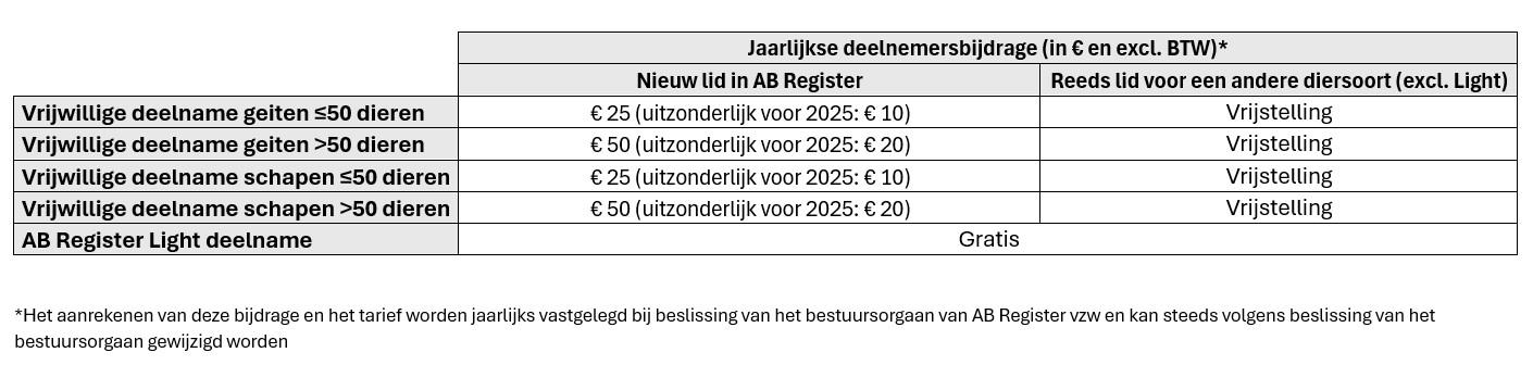De aansluitingsformulieren voor schapen- en geitenproducenten zijn beschikbaar de AB Register website in de menu's nuttige documenten voor producenten voor respectievelijk schapen en geiten.