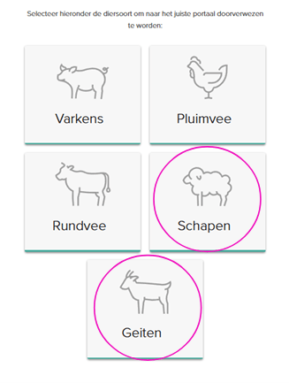 Omwille van deze uitbreiding van AB Register voor schapen en geiten, zal er in uw verschaffersportaal een knop voor schapen en een knop voor geiten worden toegevoegd.